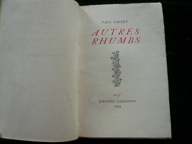 Édition originale, qui fait suite au recueil Rhumbs de 1926. « Ce nom marin de Rhumbs a intrigué quelques personnes [...]. Les remarques et les jugements qui composent ce livre me furent autant d'écarts d'une certaine direction privilégiée de mon esprit : d'où Rhumbs. » Tirage limité à 310 exemplaires. Un des 35 exemplaires sur papier vergé gris, après 10 Japon. Très bon exemplaire.