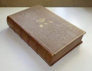 Paris, Société Typographique Belge, Adolphe Wahlen et Cie, 1844, 180x270mm, élégant demi-chagrin havane, plats toilés ornés d'un double filet doré et d'une frise à froid. Premier plat armorié, 492, 392p. Texte sur deux colonnes. Pâles rousseurs éparses.
