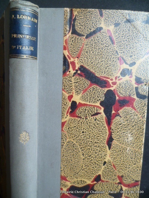 Librairie Borel, coll. « Lotus Alba » 1898 édition originale de “Princesse d’Italie”. 3 volumes en 1. In-18 8 x 14 cm. Reliure de l’époque demi basane bordeaux, dos lisse, filets, auteur et titre dorés, 90 - 120 - 78 pp. Coins et coupes frottées. Bon exemplaire.