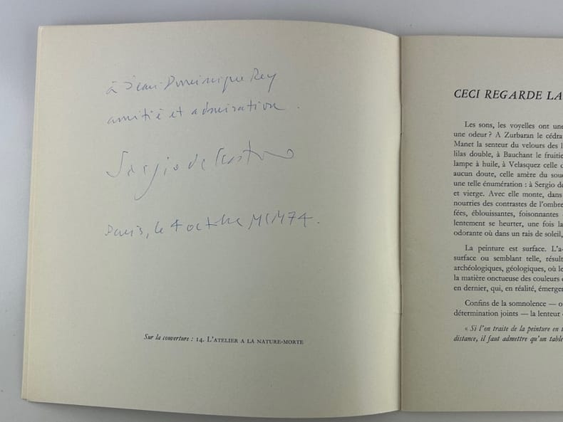 Paris, 1996 in-4, broché, . Annotations sur la 3e de couverture du catalogue Peintures de 1956 à 1966. Ensemble en bon état. On joint une courte brochure de la Galerie Argentine en 1996 "Notice au sujet de l'exposition S. de C. Dix Ateliers 1958-1967". Une amicale dédicace de l'artiste sur une page provenant d'un autre ouvrage est glissée sous le rabat de la couverture du cat. de Fribourg.