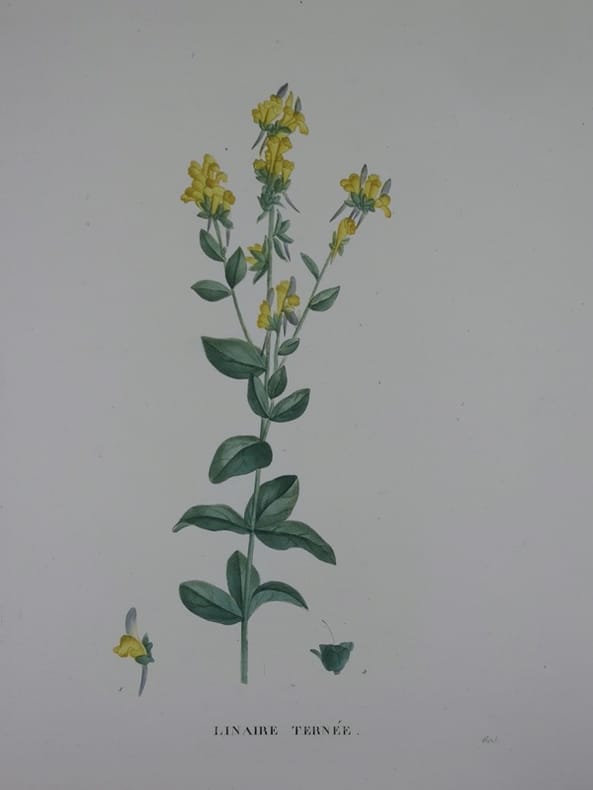 Paris, Chez l'auteur, 1819-1822, Planche non rognée sur vélin imprimée en couleurs d'après les dessins de Jaume Saint Hilaire et gravée au pointillé par Dubreuil et Veron. Gravure en couleurs sur cuivre au format 21x27cm. De toute fraîcheur.