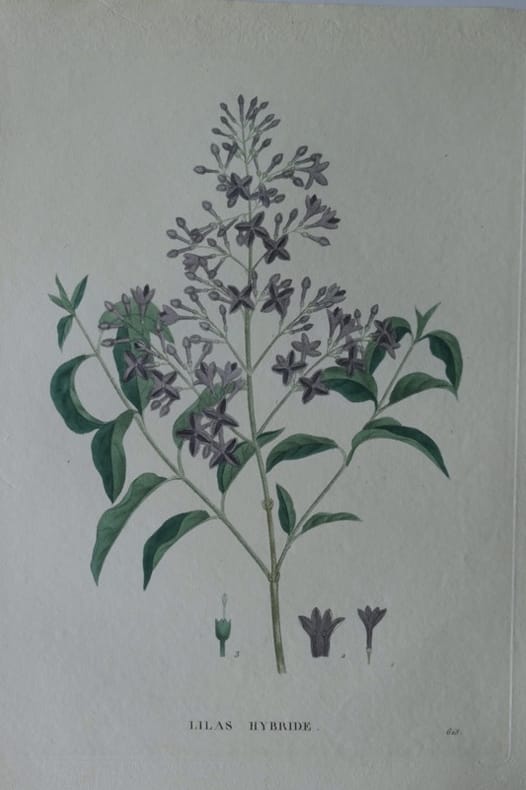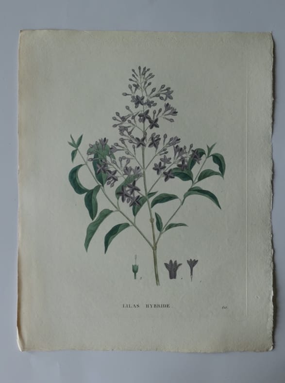 Paris, Chez l'auteur, 1819-1822, Planche non rognée sur vélin imprimée en couleurs d'après les dessins de Jaume Saint Hilaire et gravée au pointillé par Dubreuil et Veron. Gravure en couleurs sur cuivre au format 21x27cm. De toute fraîcheur.