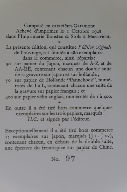 Maestricht chez A.A.M. STOLS 1928 (Coll. Les Belles Heures). Bel exemplaire broché, in-8 no 78/400 sur Vélin, 146 pages avec table.
