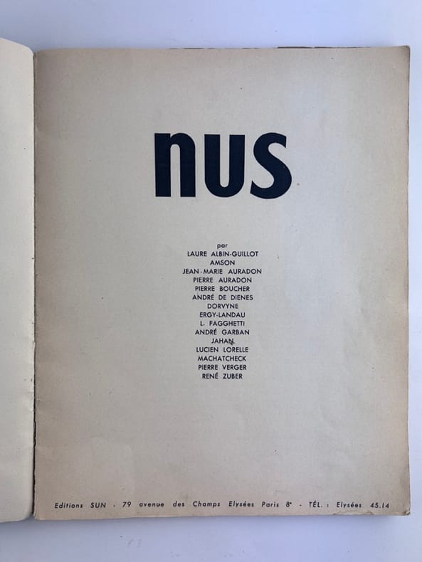 EDITION ORIGINALE de ce recueil de nus féminins. 96 photographies reproduites à pleine page en héliogravure de : Christian Aegerter, Laure Albin-Guillot, Baccarini, Maurice Beck, Boris Nickolas, Pierre Boucher, L. Caillaud, J. Capstack, Dannatt Keith, Davis Frank, Drtikol, J. Dudley-Johnston, Evansmith, Franz Feiler, Andreas Feininger, Franz Fiedler, Gilchrist, Alfred Grabner, Hammond Walden, Forman Hanna, Ludwig Harren, Ewald Hoinkis, E.-O. Hoppé, Charles Hurault, Ergy Landau, Bernard Leedham, Carlo Leonetti, Manassé, Daniel Masclet, Jan de Meyere, Marcel Meys, Moholy-Nagy, Jean Moral, William Mortensen, Harold Orne, Bertram Park, Pecsi, Fred P. Peel, H. Von Perckhammer, George Platt Lynes, Ray Man, Richardson-Cremer, Hans Robertson, Denes Ronay, Pietro Sacchi, Bruno Schultz , J. Schuwerack, Walter Sussmann, Kalman Szollosy, Verneuil, Patar Weller, Yva, Willy Zielke, Alois Zych. >Très bel exemplaire, sous sa jaquette transparente en rhodoïd d'origine. Très bon 0