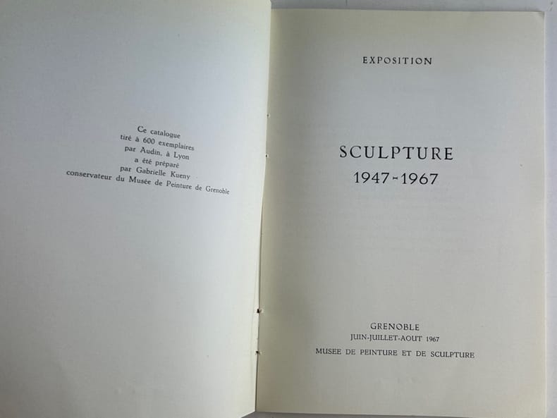 Grenoble, Musée de Peinture et de Sculpture, 1967, in-8, broché, Catalogue tiré à 600 exemplaires. 61 numéros présentés, 44 planches NB. Bon état.