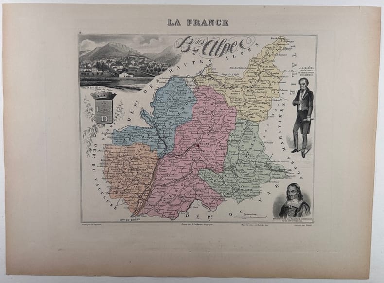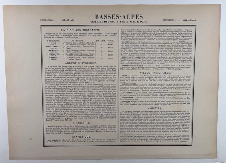 Paris J. Migeon, Libraire -Editeur, Carte ancienne de toute fraîcheur gravée sur acier, imprimée sur papier fort et accompagnée de sa notice historique, biographique, statistique, etc.. sur une feuille distincte. Format de la carte, marges comprises : 26x35cm.
