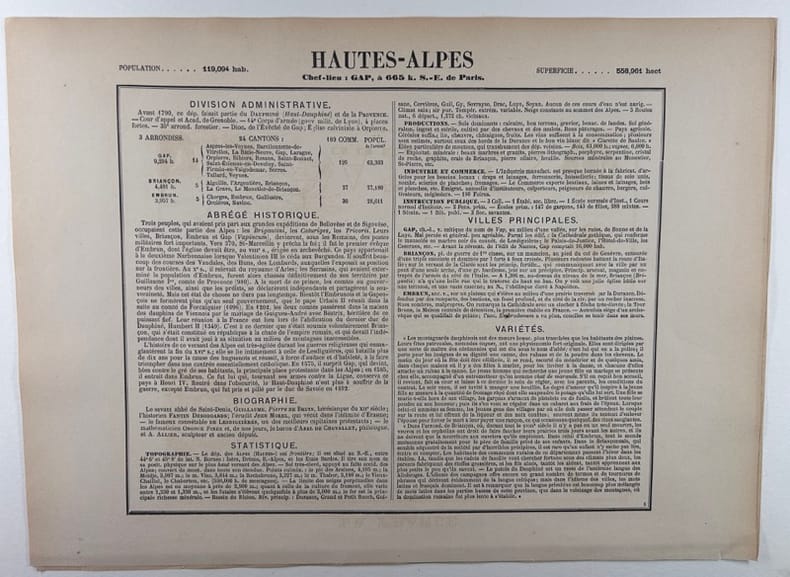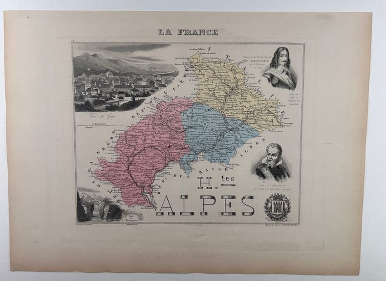 Paris J. Migeon, Libraire -Editeur, Carte ancienne de toute fraîcheur gravée sur acier, imprimée sur papier fort et accompagnée de sa notice historique, biographique, statistique, etc.. sur une feuille distincte. Format de la carte, marges comprises : 26x35cm.