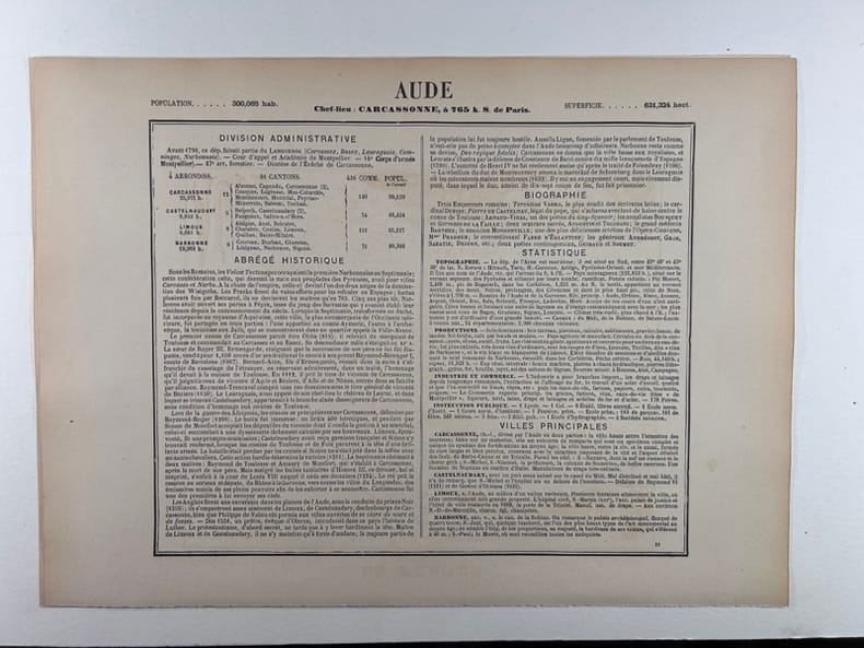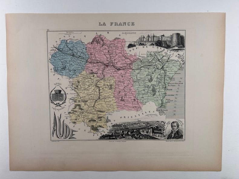 Paris J. Migeon, Libraire -Editeur, Carte ancienne de toute fraîcheur gravée sur acier, imprimée sur papier fort et accompagnée de sa notice historique, biographique, statistique, etc.. sur une feuille distincte. Format de la carte, marges comprises : 26x35cm.