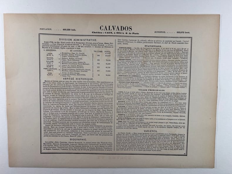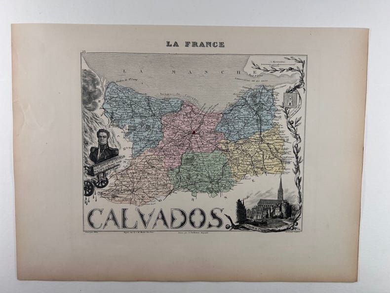 Paris J. Migeon, Libraire -Editeur, Carte ancienne de toute fraîcheur gravée sur acier, imprimée sur papier fort et accompagnée de sa notice historique, biographique, statistique, etc.. sur une feuille distincte. Format de la carte, marges comprises : 26x35cm.