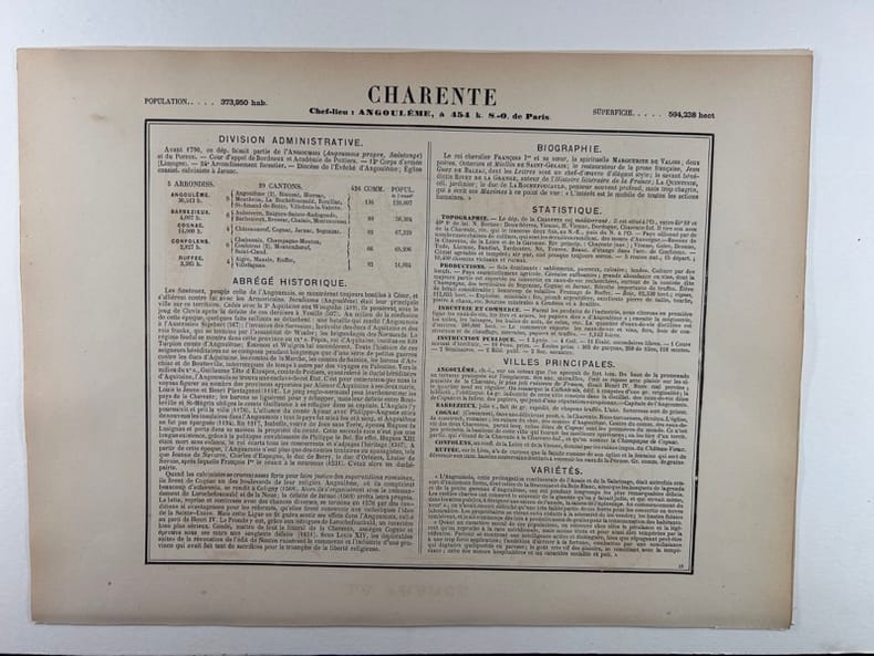 Paris J. Migeon, Libraire -Editeur, Carte ancienne de toute fraîcheur gravée sur acier, imprimée sur papier fort et accompagnée de sa notice historique, biographique, statistique, etc.. sur une feuille distincte. Format de la carte, marges comprises : 26x35cm.