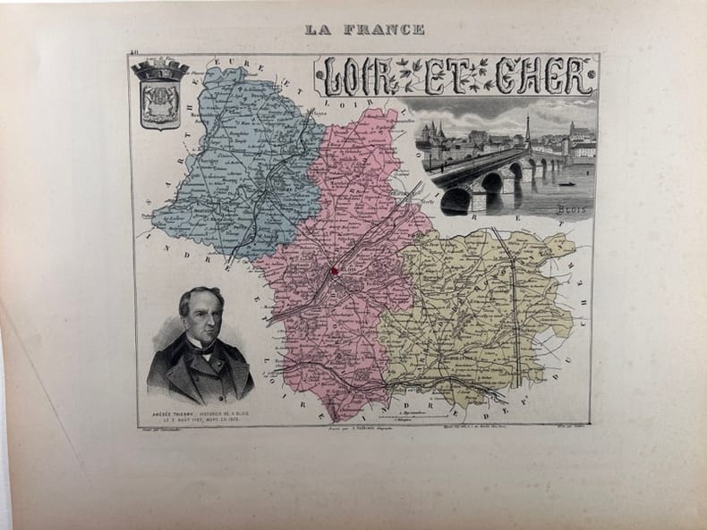 Paris J. Migeon, Libraire -Editeur, Carte ancienne de toute fraîcheur gravée sur acier, imprimée sur papier fort et accompagnée de sa notice historique, biographique, statistique, etc.. sur une feuille distincte. Format de la carte, marges comprises : 26x35cm.