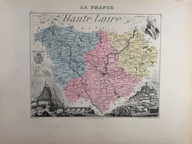 Paris J. Migeon, Libraire -Editeur, Carte ancienne de toute fraîcheur gravée sur acier, imprimée sur papier fort et accompagnée de sa notice historique, biographique, statistique, etc.. sur une feuille distincte. Format de la carte, marges comprises : 26x35cm.