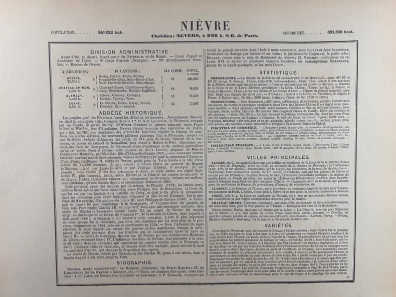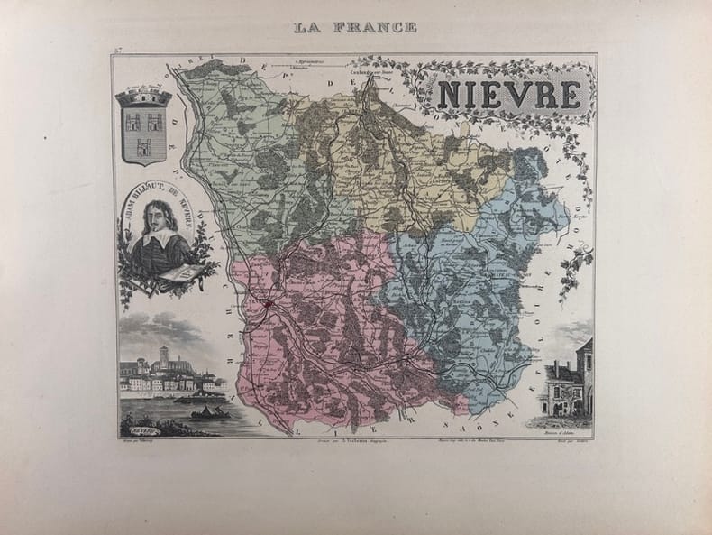 Paris J. Migeon, Libraire -Editeur, Carte ancienne de toute fraîcheur gravée sur acier, imprimée sur papier fort et accompagnée de sa notice historique, biographique, statistique, etc.. sur une feuille distincte. Format de la carte, marges comprises : 26x35cm.