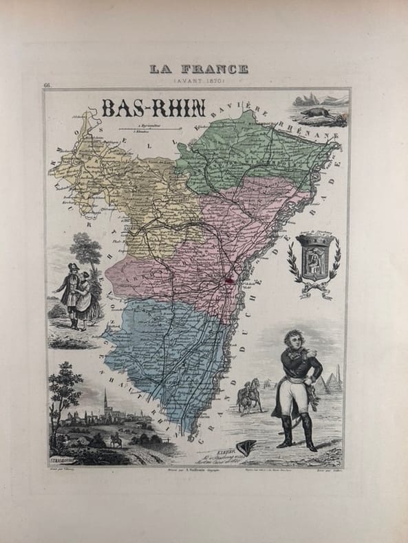 Paris J. Migeon, Libraire -Editeur, Carte ancienne de toute fraîcheur gravée sur acier, imprimée sur papier fort et accompagnée de sa notice historique, biographique, statistique, etc.. sur une feuille distincte. Format de la carte, marges comprises : 26x35cm.