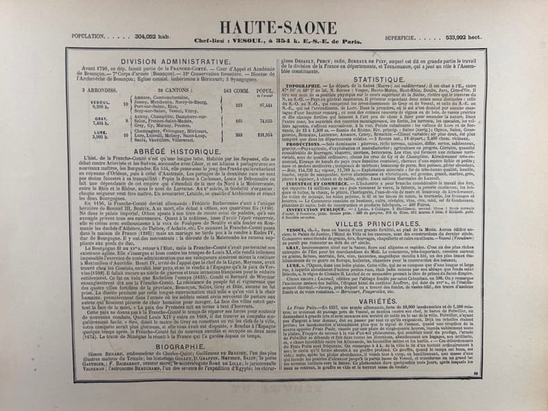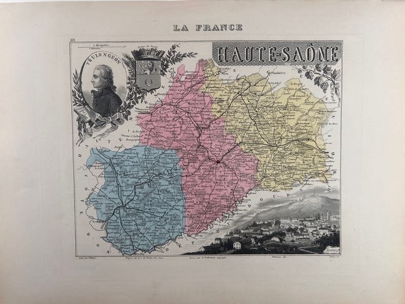 Paris J. Migeon, Libraire -Editeur, Carte ancienne de toute fraîcheur gravée sur acier, imprimée sur papier fort et accompagnée de sa notice historique, biographique, statistique, etc.. sur une feuille distincte. Format de la carte, marges comprises : 26x35cm.
