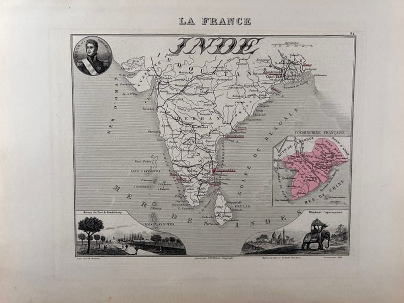 Paris J. Migeon, Libraire -Editeur, Carte ancienne de toute fraîcheur gravée sur acier, imprimée sur papier fort et accompagnée de sa notice historique, biographique, statistique, etc.. sur une feuille distincte. Format de la carte, marges comprises : 48x35cm