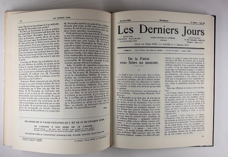 Paris Jean-Michel Place 1979, in-4, Très bon état. Collection Réimpressions des revues d'avant-garde", n° 16. Reproduction anastaltique de la collection complète de la revue "Les derniers jours".