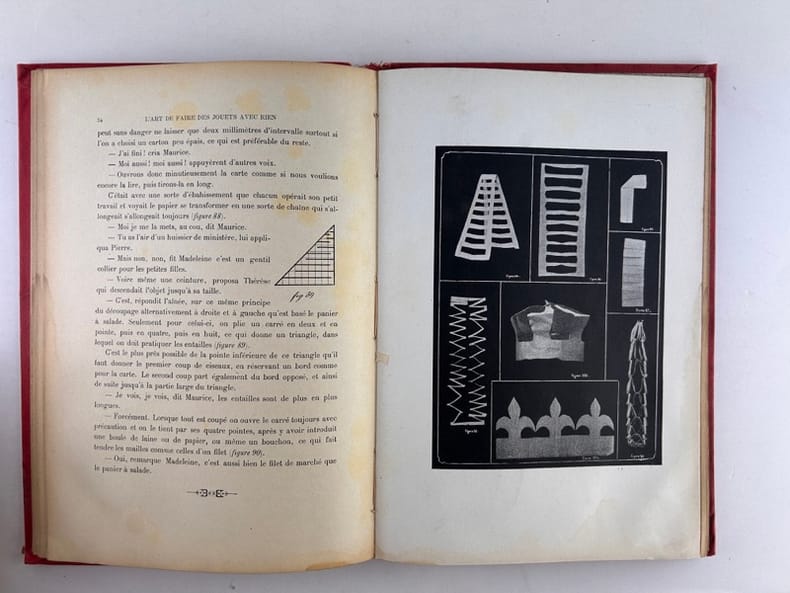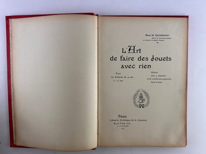 Paris Raphaël Tuck, Editeur. Bibliothèque Artistique de la Jeunesse 1906, in-4 (19 x 28,5 cm), pleine lustrine éditeur, vignette en couleur contrecollée, 96p. Illustré de 14 planches hors-texte et de nombreuses gravures dans le texte. Une petite découpe dans l'angle d'une planche. Mouillure en pied, visible surtout sur les gardes, n'affectant ni le texte ni les illustrations. Bon état général.