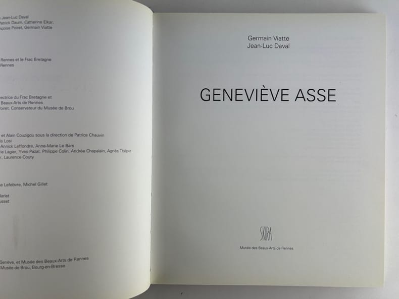 Paris, Bibliothèque Nationale de France, 2002. 725 g Petit in-4 broché sous étui, 119-[1] pp.. Catalogue de l'exposition de la BNF du 26 février au 19 mai 2002. Contient un poème d'André du Bouchet et des textes de Geneviève Asse, de Marie-Cécile Miessner et de Marie-Françoise Quignard. Un des 50 exemplaires numérotés et signés au crayon par Geneviève Asse celui-ci n°1/50, accompagné d'une pointe sèche originale (21x18 cm) également numérotée 1/50, signée par l'artiste et datée au verso de 2002. . (Catégories : Arts, Gravures / Estampes, )