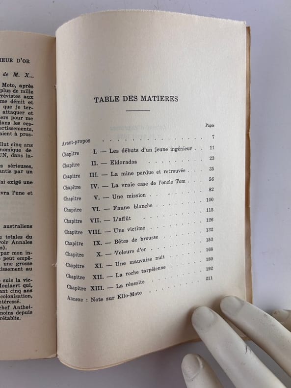 3 ouvrages reliés en 1 volume: les 2 tomes des "Aventures d'un chercheur d'or au Klondike" du journaliste, aéronaute et auteur d'ouvrages de vulgarisation scientifique Wilfrid de FONVIELLE (1824-1914) et "La montagne perdue", traduction / adaptation, par Guy BRAND, de "The Gold-seeker's Guide, or The Lost Mountain - A Tale of Sonora" du romancier états-unien Thomas Mayne REID (1818-1883; dit MAYNE-REID); extraits du catalogue éditeur de la "Série B - Romans d'aventures, chasses et voyages" en fin des 2 premiers tomes, annonce publicitaire illustrée à la fin du dernier. Edition non datée (ouvrages respectivement publiés en 1900 et 1899, dates vraisemblables au vu des titres annoncés dans les catalogues de la collection).