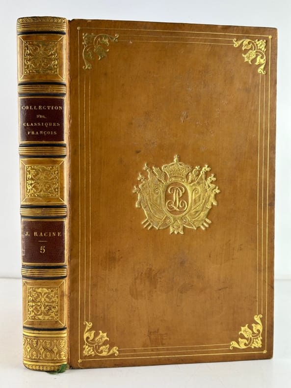Paris Chez Lefèvre/ Imp. Jules Didot 1825, in-8 (15x23cm), 484p. Reliure en plein veau glacé, aux armoiries de la Monarchie de juillet, avec le chiffre de Louis-Philippe à la place du livre ouvert, surmonté d'une couronne fermée, le sceptre et la main de justice en sautoir, drapeaux de part et d'autre du chiffre. Plats encadrés d'un triple filet fin avec fleurons d'angle, dos à 4 nerfs décorés de filets, caissons ornés, pièces de titre et de tomaison en maroquin bordeaux, tranchefile 3 couleurs, coupes décorées aux angles et roulettes sur chasse, toutes tranches dorées. Gardes de papier marbré caillouté bleu. Ex-libris armorié Ivan Plissart. Joint un feuillet manuscrit reproduisant la notice extraite du Nouvel Armorial du Bibliophile de Guigard relative à Louis-Philippe et au verso une note indiquant le prix, la date et le nom du libraire parisien chez lequel ce volume fut acquis.