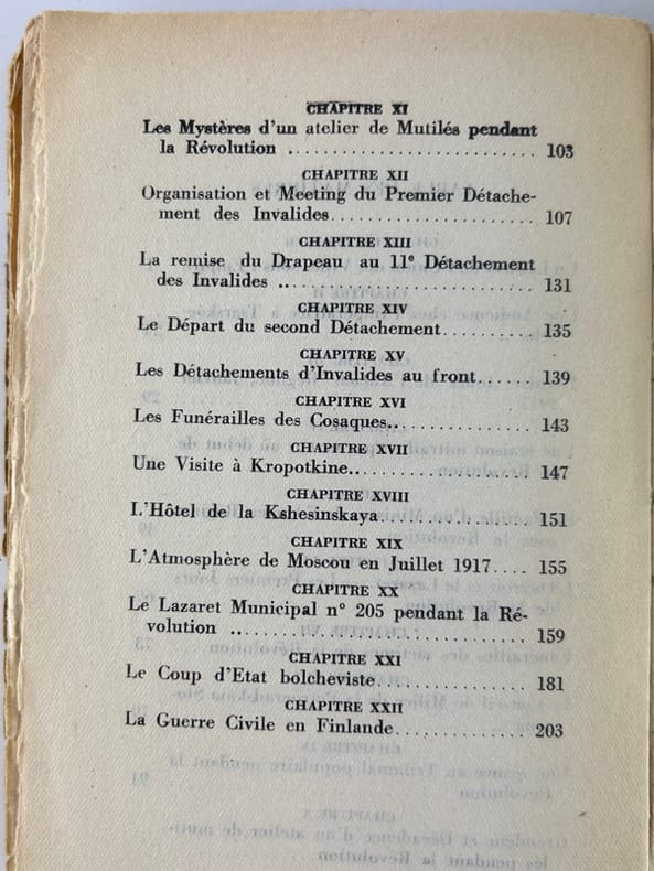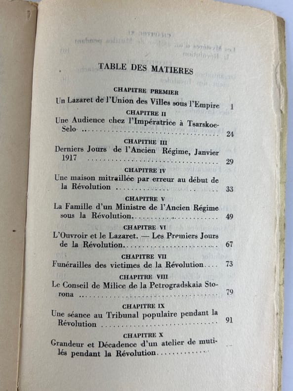 TABLE DES MATIERES CHAPITRE PREMIER Un Lazaret de l'Union des Villes sous l'Empire 1 CHAPITRE II Une Audience chez l'Impératrice à Tsarskoe-Selo. 24 CHAPITRE III Derniers Jours de l'Ancien Régime, Janvier 1917 29 CHAPITRE IV Une maison mitraillée par erreur au début de la Révolution 33 CHAPITRE V La Famille d'un Ministre de l'Ancien Régime sous la Révolution.. 49 CHAPITRE VI L'Ouvroir et le Lazaret. Les Premiers Jours de la Révolution.. 67 73 CHAPITRE VII Funérailles des victimes de la Révolution. CHAPITRE VIII Le Conseil de Milice de la Petrogradskaia Storona 79 CHAPITRE IX Une séance au Tribunal populaire pendant la Révolution CHAPITRE X 91 Grandeur et Décadence d'un atelier de mutilés pendant la Révolution. CHAPITRE XI Les Mystères d'un atelier de Mutilés pendant la Révolution 103 CHAPITRE XII Organisation et Meeting du Premier Détachement des Invalides. CHAPITRE XIII 107 La remise du Drapeau au 11º Détachement des Invalides CHAPITRE XIV 131 Le Départ du second Détachement. 135 CHAPITRE XV Les Détachements d'Invalides au front. 139 CHAPITRE XVI Les Funérailles des Cosaques. 143 CHAPITRE XVII Une Visite à Kropotkine. 147 CHAPITRE XVIII I.'Hôtel de la Kshesinskaya 151 CHAPITRE XIX L'Atmosphère de Moscou en Juillet 1917. 155 CHAPITRE XX Le Lazaret Municipal nº 205 pendant la Révolution 159 CHAPITRE XXI Le Coup d'Etat bolcheviste. 181 CHAPITRE XXII La Guerre Civile en Finlande. 203