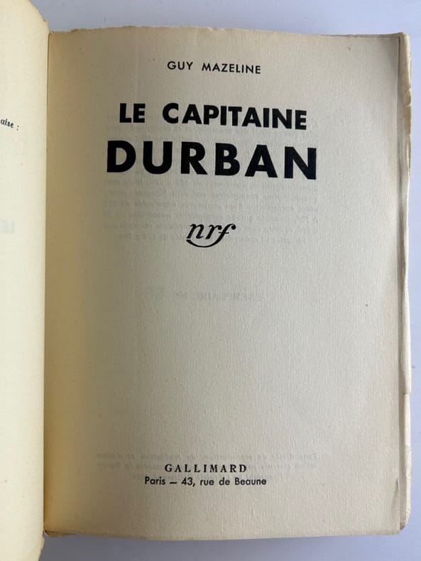Livre. Roman. Editions Gallimard, 1934.