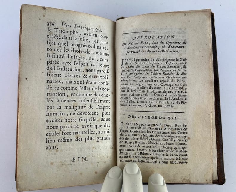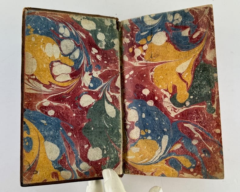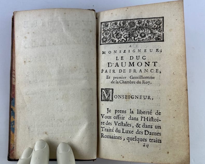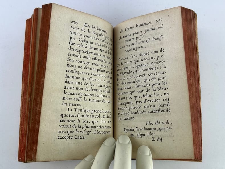 Paris Chez la veuve de Pierre Ribou 1725, 9 x 16,5 cm, pleine basane de l'époque, dos à 5 nerfs, caissons ornés d'un fleuron, pièce de titre maroquin, toutes tranches rouges, 386p. Bon état. Texte frais.