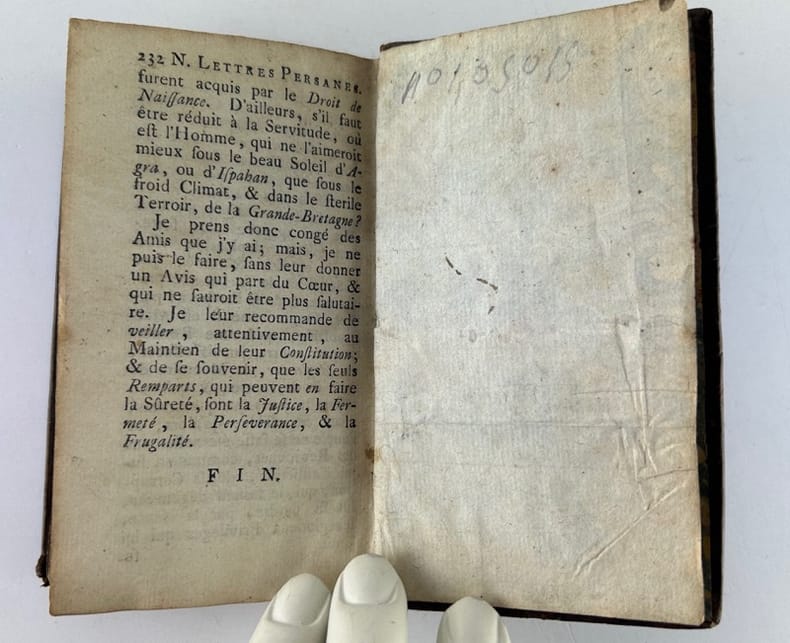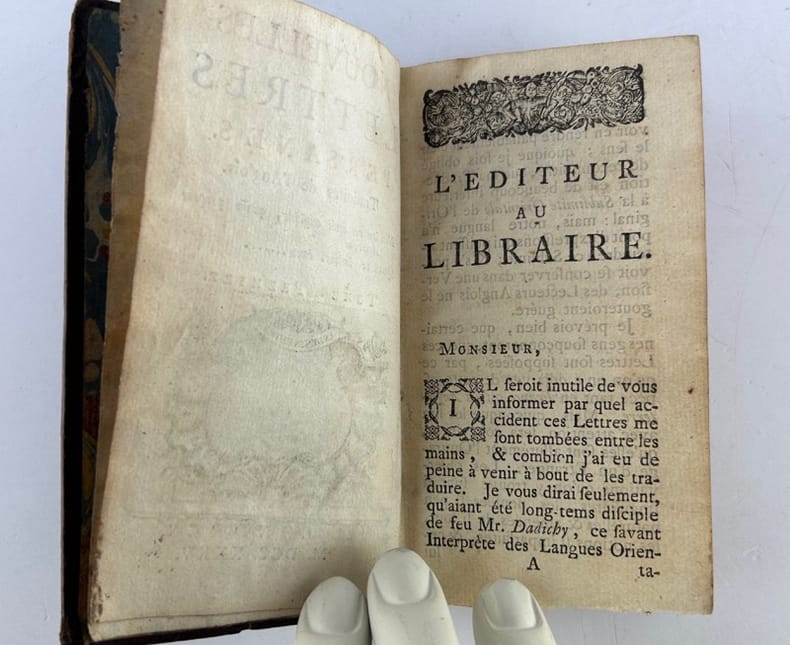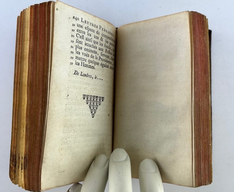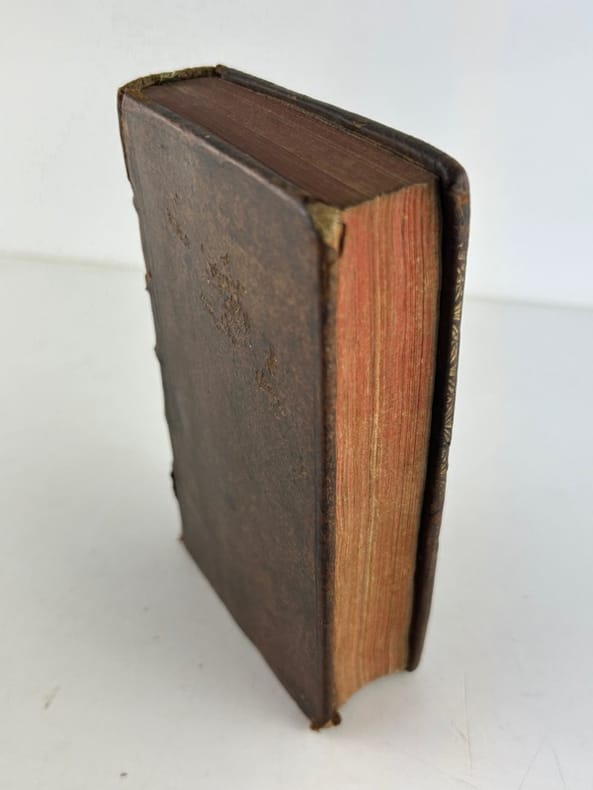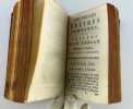Londres Sans mention d'éditeur 1735, 7,5 x 13,5 cm, reliure de l'époque en plein veau jaspé fin, dos à 5 nerfs, caissons ornés, pièce de titre maroquin, toutes tranches rouges, 240 & 232pp. Vignette en noir sur la page de titre. Bon exemplaire.
