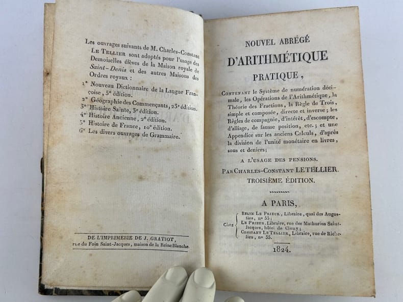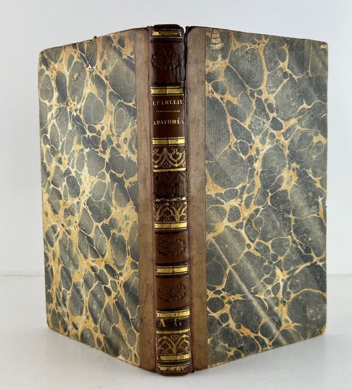 Paris Chez Belin Le Prieur, Le Prieur, Constant. Letellier 1824, 10 x 17,5 cm, demi-veau blond de l'époque, dos long décor à la cathédrale, initiales A.G. en pied, plats de papier marbré, toutes tranches marbrées, 248p. 3e édition. Charnière fendillée sur 3 cm, sans gravité. Bon état.