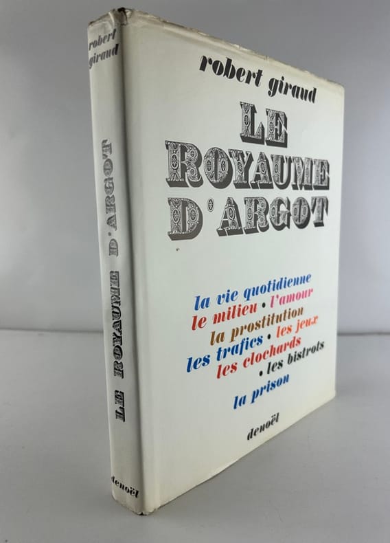 Denoël 1965 In-4 cartonné 28 cm sur 23. 347 pages. Envoi de Robert Giraud : “à Prinner, le royaume d’argot, entièrement sculpté au couteau par son pote qui ressemble à un pic.vert et qui signe amicalement, Robert Giraud dit Bob l’haricot”. Jaquette tâchée. Nombreuses déchirures avec manques. Dos déchiré en tête. Intérieur frais. État correct d’occasion.