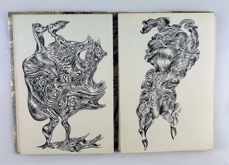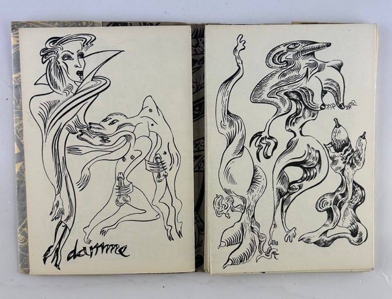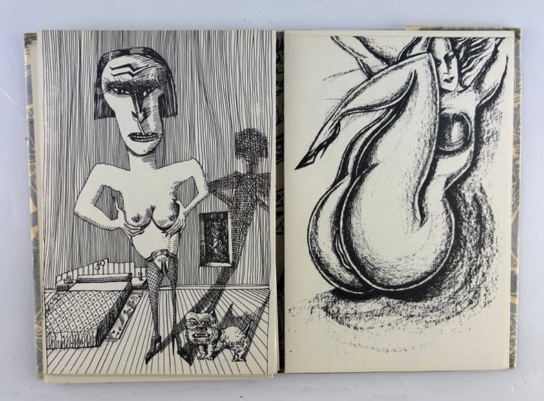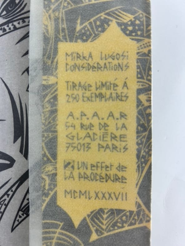 Paris A.P.A.A.R 1987, 11,5x16cm, en feuilles sous jaquette imprimée à rabat et papier cristal typographié, Edition originale. 36 dessins en noir. Bel exemplaire.