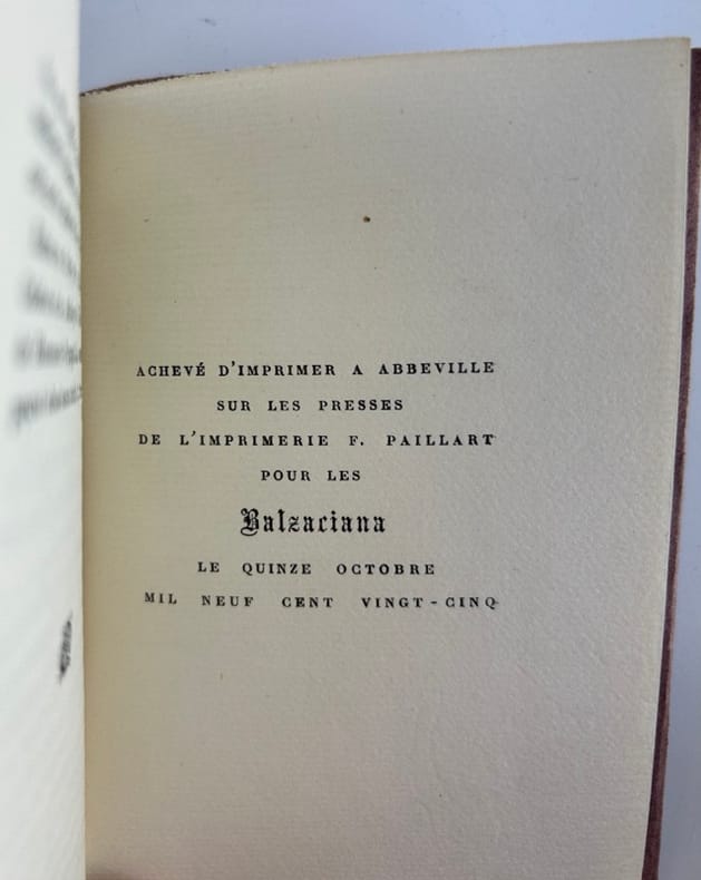 Paris, Cité des Livres (Abbeville, F. Paillart), 1925, collection balzacienne N°1 ; in-12, broché ; (2) ff. blancs, 22, (2) pp., (2) ff. blancs, couverture rempliée lie-de-vin.