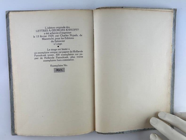Léon Bloy, Lettres à Georges Khnopff. Liège, éditions du Balancier, 1929. In-8, 55p. Edition originale tirée à 300 exemplaires sur hollande (n°119), ici avec la couverture blanche (les couvertures étaient soit bleues soit blanches). Broché, petits défauts. Bon exemplaire. [V]