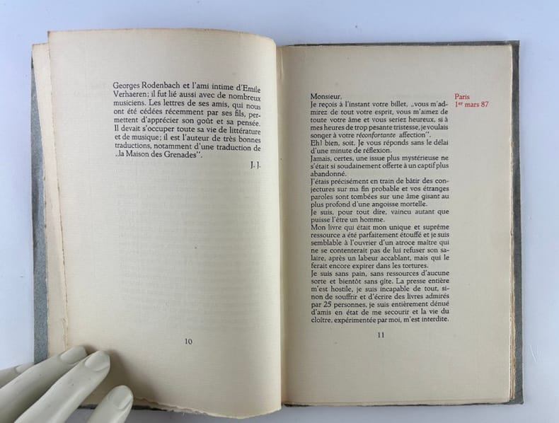 Sans reliure, Edition dans une boîte, 28 x 19 cm, pages non numérotées pp. et non coupées, français, 1ère édition, état du livre: Comme neuf. Imprimée par les soins du maitre imprimeur Firmin Desmet, a Bruxelles, est strictement limitée a 20 exemplaires sur Velin d'Arches, numerotés a la presse et destines a la famille du poete et a quelques admirateurs. Exemplaire n° 16.