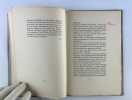 Liège Les Editions du Balancier / Charles Nypels Imp. 15 février 1929,, in-8 (15x21cm), broché sous couverture rempliée, Edition originale. Tirage justifié à 331 exemplaires sur Hollande. Un des 30 ex. hors commerce. n° XVI. Bel exemplaire.