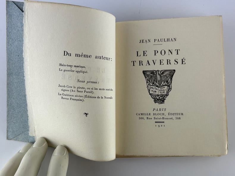 Edition originale imprimée à 575 exemplaires numérotés sur vergé d'Arches à la forme. Ouvrage illustré d'une vignette de Raoul Dufy sur la couverture. Dos éclairci comme généralement, sinon agréableexemplaire. Signature manuscrite de Jean Paulhan en pied de la première garde. - Photographies et détails sur www.Edition-Originale.com -