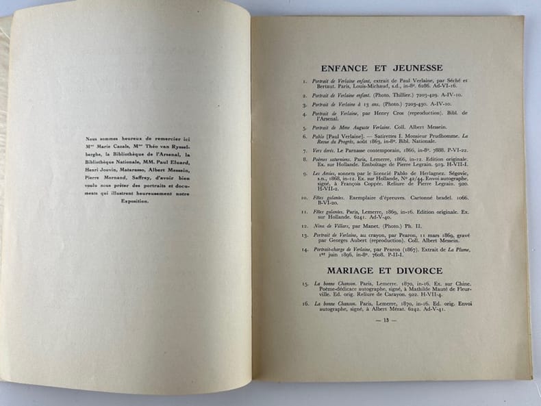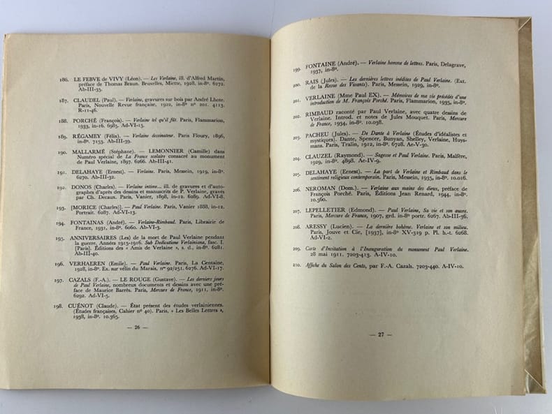 Paris Bibliothèque Universitaire de Jacques Doucet 1946, 16 x 21 cm, agrafé, 27p. Bon état. 210 numéros présentés.