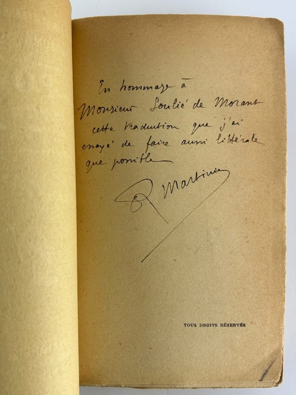 Paris Les Editions Rieder 1927, in-8, broché, 343p. Envoi du traducteur au sinologue G. Soulié de Morant. Edition originale de la traduction sur papier courant. Bon état.