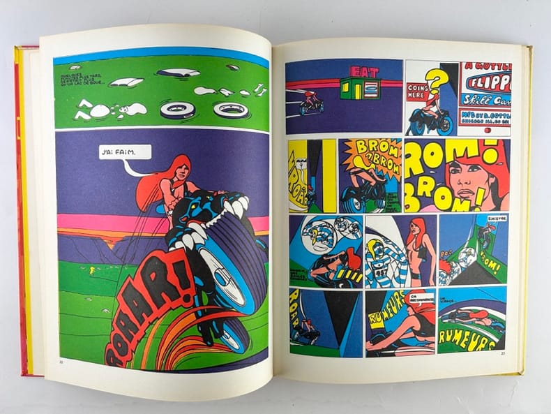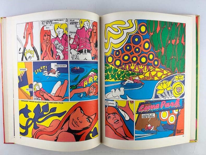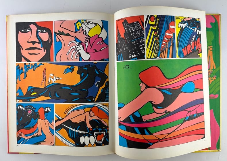 Paris, Eric Losfeld Éditeur, (1968). In-8º (28.8 cm) (71) (1), pages illustrées de bandes dessinées couleurs. Reliure de cartonnage illustré. Très bel état.