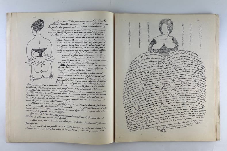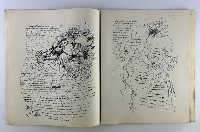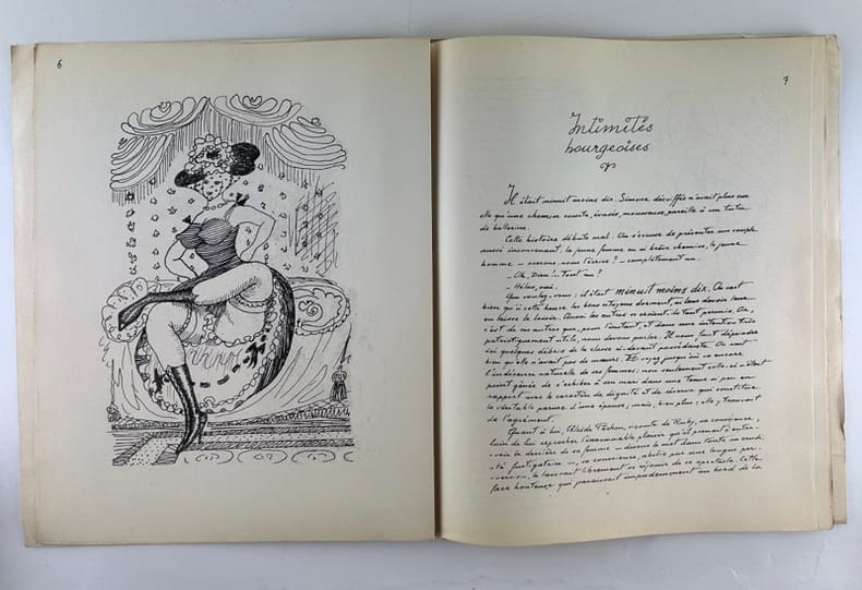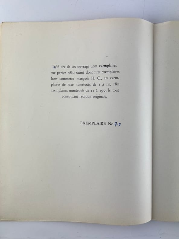 Limoges Rougerie / Coll. La porte ouverte Sans date (1949), in-4 (23x28cm), en feuilles sous chemise, 31p. Edition originale numérotée. L'un des 200 ex. sur papier hélio satiné. n°79. Reproduction du manuscrit, illustré de nombreuses illustrations en noir. Un coin du deuxième plat présente une marque de pliure sinon bel exemplaire.