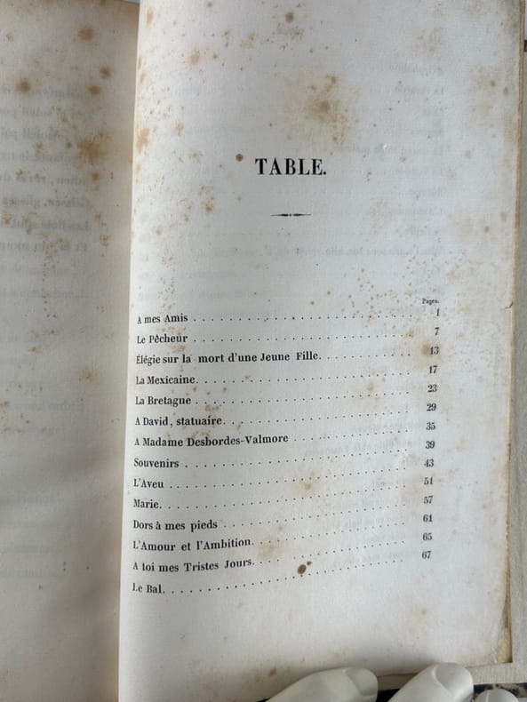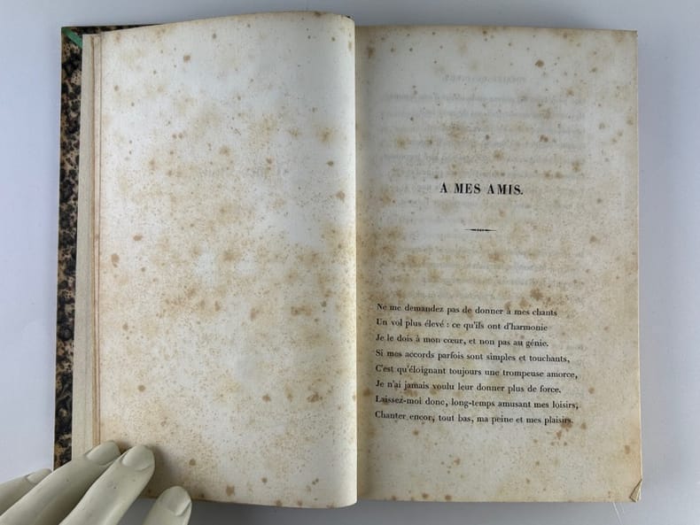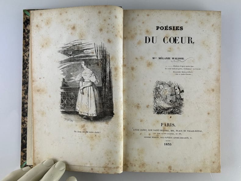 Etat très satisfaisant (ancienne dédicace découpée en faux-titre, petites taches d'encre marginales, des rouss., dos lég. frotté). Romancière, poète et dramaturge, Mélanie Waldor (1791-1871) devint en 1827 la maîtresse d'Alexandre Dumas. En 1835, année de publication des "Poésies du Coeur", qui reçut le meilleur accueil du public lettré, elle devint la maîtresse du Comte de Cavour. Vicaire, VII, 1148