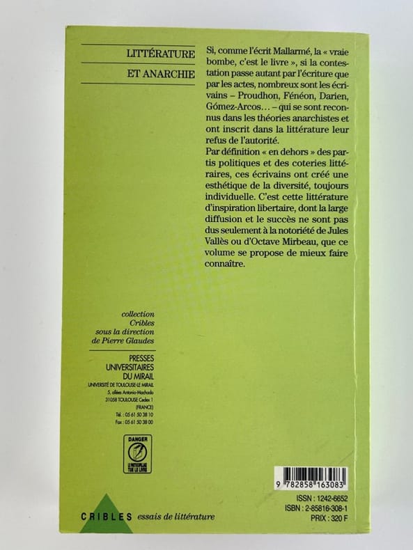 Toulouse, Presses Universitaires du Mirail, "Cribles", 1998, 13,5 x 22, 544 pages sous couverture souple illustrée.