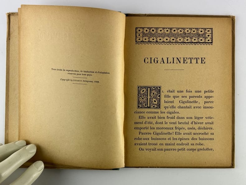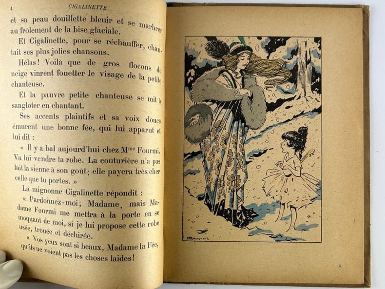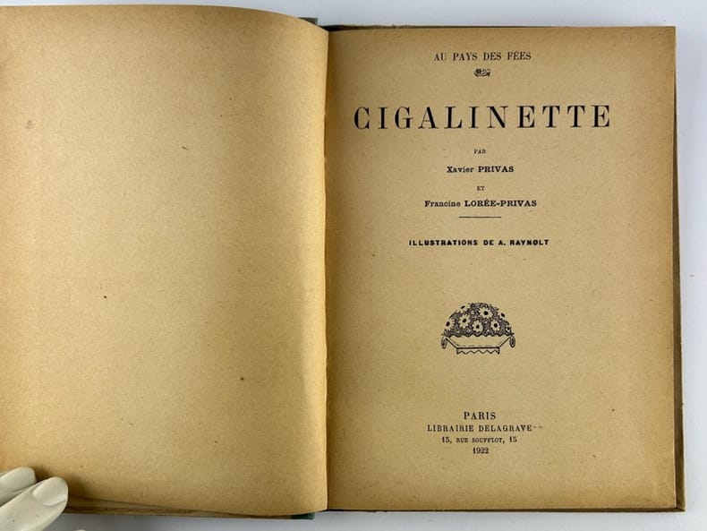 Paris LIbrairie Delagrave, Au Pays des Fées 1922, 15,5 x 20,5 cm, cartonnage demi-toile, 23p. Première édition. Marque de mouillure en marge du premier plat. Intérieur en très bon état, de toute fraîcheur.