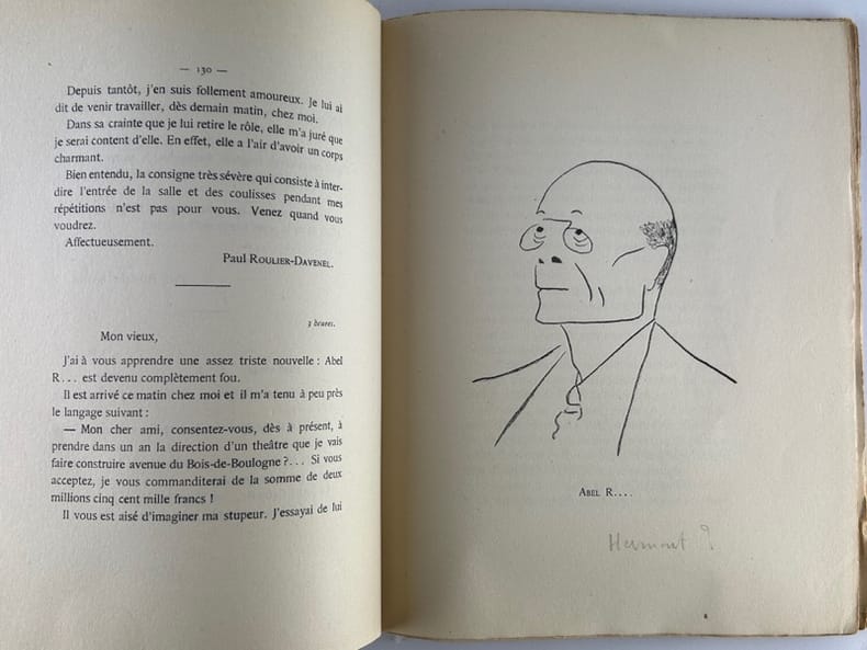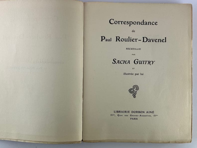 Edition originale sur papier courant (il n'y a eu que 15 ex. sur japon). Avec envoi de Sacha Guitry à Thierry de Martel. - Correspondance imaginaire autour d'un auteur médiocre du monde du théâtre de la Belle Epoque. Comme l'indique Jean-Laurent Cochet dans l' introduction de la nouvelle édition de 2008 "Tout est faux dans ce livre sauf le talent du véritable auteur". - Couverture légèrement défraichie.