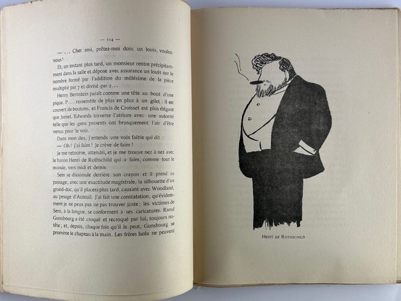 Paris, Dorbon aîné, sans date (début XXe), 19 X 24 cm., broché, 182 pp. Illustrations en noir hors texte de Sacha Guitry, dans un style caricatural. Couverture légèrement usagée, intérieur propre.