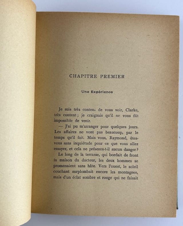 Paris, Editions de la Plume, 31 rue Bonaparte 1901, 12 x 16,5 cm, demi-reliure, dos long, titre et date à l'or, 141p. Couvertures et dos conservés. Édition originale française de ce chef d'oeuvre de la littérature fantastique (premier roman de l'auteur) dont il y eut par la suite plusieurs rééditions par Georges Crès : datées également de 1901, mais comportant soit la nouvelle couverture de G. Crès, soit la mention de réédition sur la page de titre, et illustrées d'un frontispice dessiné par Ciolkowski. Très bon état.