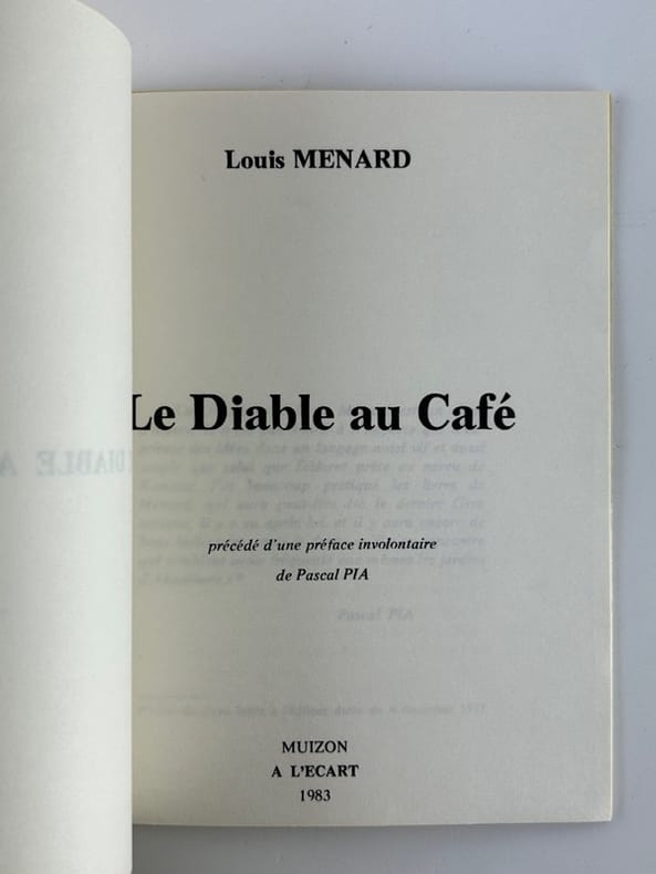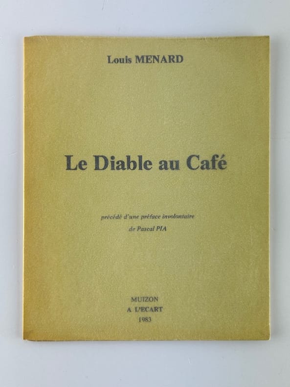 Muizon A l'Ecart 1983, 14,5 x 18 cm, broché, sous cristal, 21p. Bon état. Réédition tirée à petit nombre de ce court texte qui ouvre les "Rêveries d'un païen mystique" (1876).