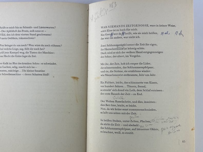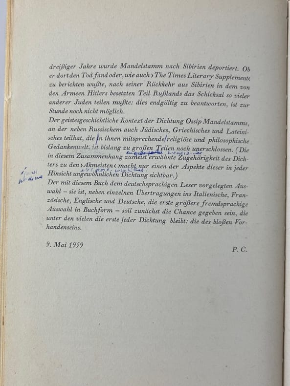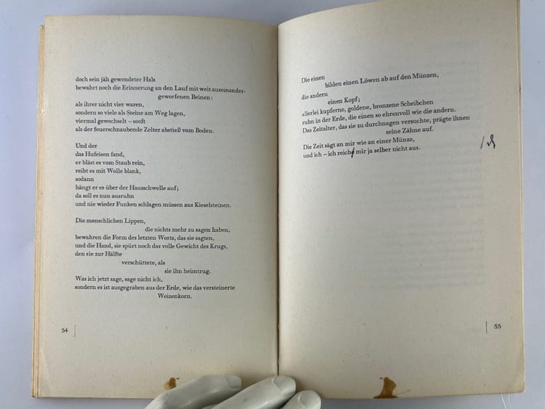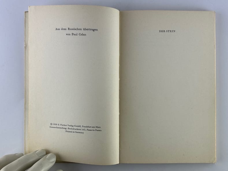 Frankfurt am Mein S. Fischer Velrag 1959, in-8, cartonnage beige éditeur, 63p. Petite tache en pied de quelques pages. Brèves annotations et corrections au stylo et à la plume.