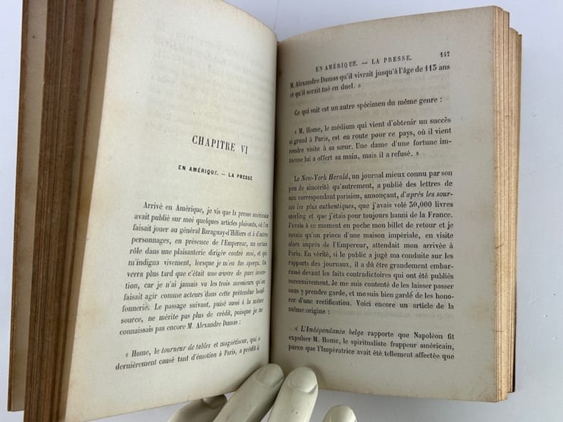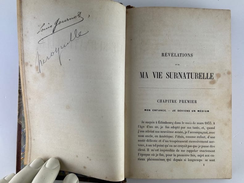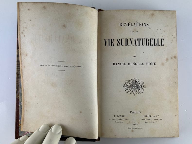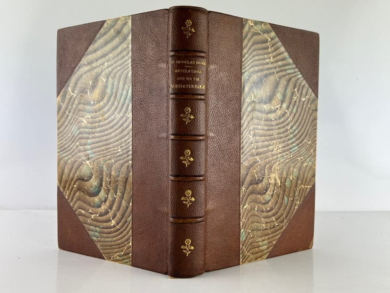 Paris E. Dentu, Librairie-Editeur / Didieer et Cie, Libraires-Editeurs 1863, in-12, reliure demi-chagrin havane coins, dos orné de lfeurons, titre à l'or, plats de papier marbré, 336p. Edition originale de la traduction. Mémoires du célèbre voyant écossais, à la fois médium, magicien, illusionniste. Il aura stupéfait le 19e siècle avec ses tours inexplicables, ses dialogues avec l'au-delà, ses capacités de télékinésie, sa puissance psychique et ses séances de lévitation. Très bon état.